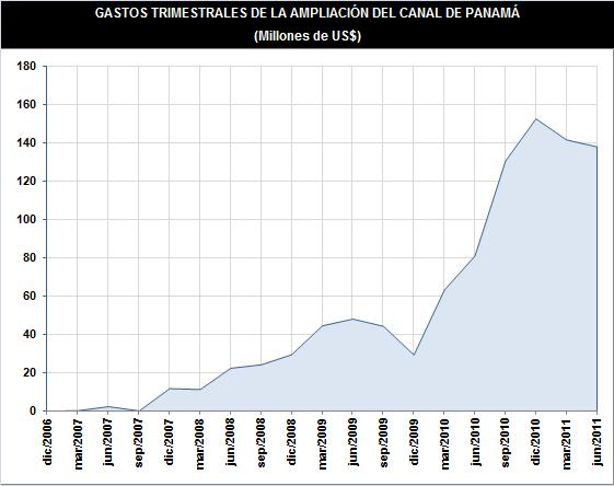 La ampliación del Canal registra un avance de 30% en sus distintos componentes como dragado, excavación seca, diseño y construcción de las nuevas esclusas, informó la Autoridad del Canal de Panamá el 19 de octubre de 2011. Se han adjudicado contratos por más de US$4,228 millones.
