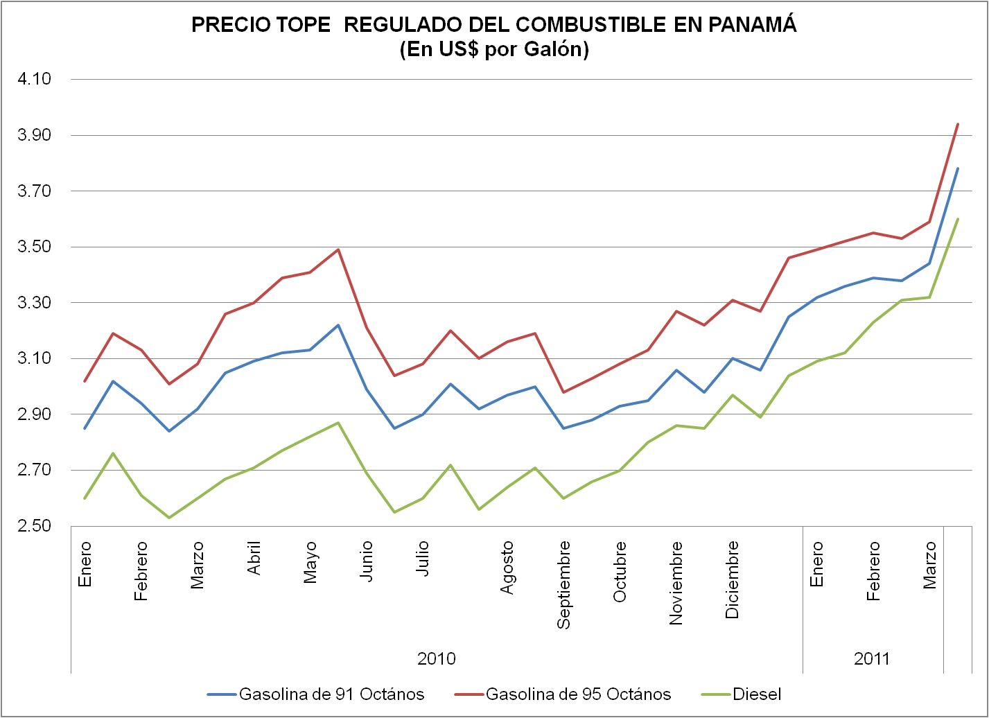 EVOLUCIÓN DEL PRECIO TOPE REGULADO DEL COMBUSTIBLE EN PANAMÁ