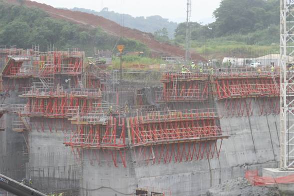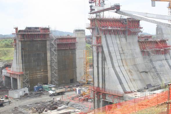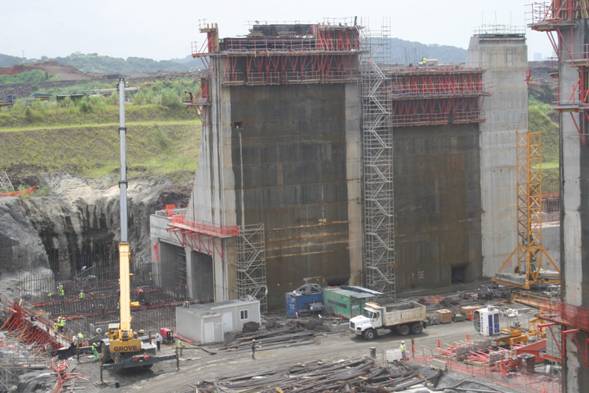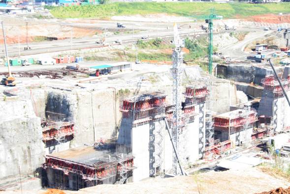 En el caso en particular de la construcción de los dos nuevos juegos de esclusas el avance es del 29%. El Presidente Martineli dijo que la ampliación podría estar lista en octubre de 2014. Sin embargo, en particular, se estima que este componente del proyecto tiene seis meses de retraso, debido a múltiples circunstancias entre las que resalta retrasos en la fórmula de la mezcla para la producción del hormigón para las esclusas.