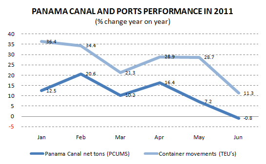 The latest economic indicators report from the National Institute of Statistics and Census (INEC) showed a slowdown in the Panama Canal activity to its contraction in June 2011. The Panama Canal net tons (PCUMS), which is an indicator that measures the activity of the Canal in real terms, without the influence of prices, grew 20.6% in February 2011 but then declined consistently until contract by 0.8% in June. The downward trend also occurred in toll revenues, as these are charged on PCUMS except for the case of cruises where tolls are collected based on the number of berths of the ship.