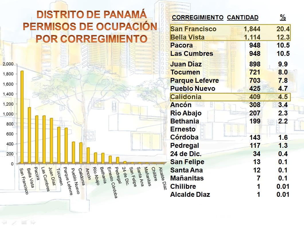 En los corregimientos más distantes al centro, como Pacora, Las Cumbres y Tocumen se construyen casas. Representando el 29% de los permisos de ocupación.