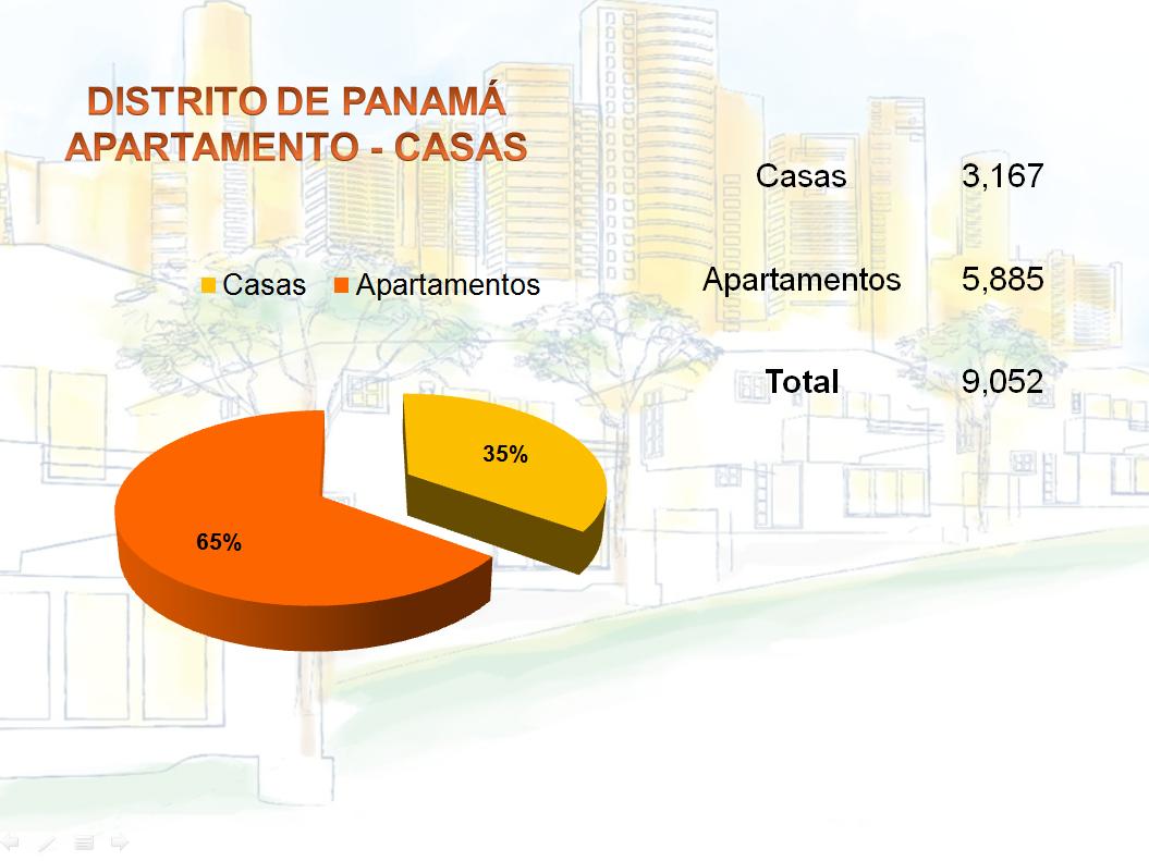 Resumiendo, vemos que del total de las viviendas que tramitaron Permisos de Ocupación en el Distrito de Panamá, el 35% son casas y el 65% son apartamentos. En el 2010 la proporción era de 39% casa y 61% apartamentos, variando en 4% positivo la construcción de casas en el 2011.