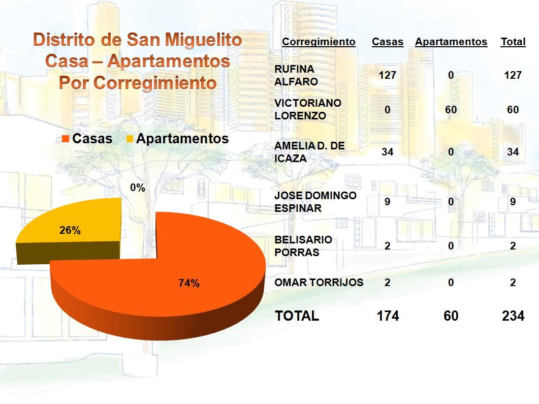 A diferencia del distrito de Panamá, en San Miguelito se construyen viviendas unifamiliares, con un 74% que tramitaron permisos de ocupación y apenas un 26% que se solicitaron para apartamentos. Es interesante señalar que el año pasado apenas se construían un 10% de apartamentos, aumentando en 16% la construcción de los mismos para este año.