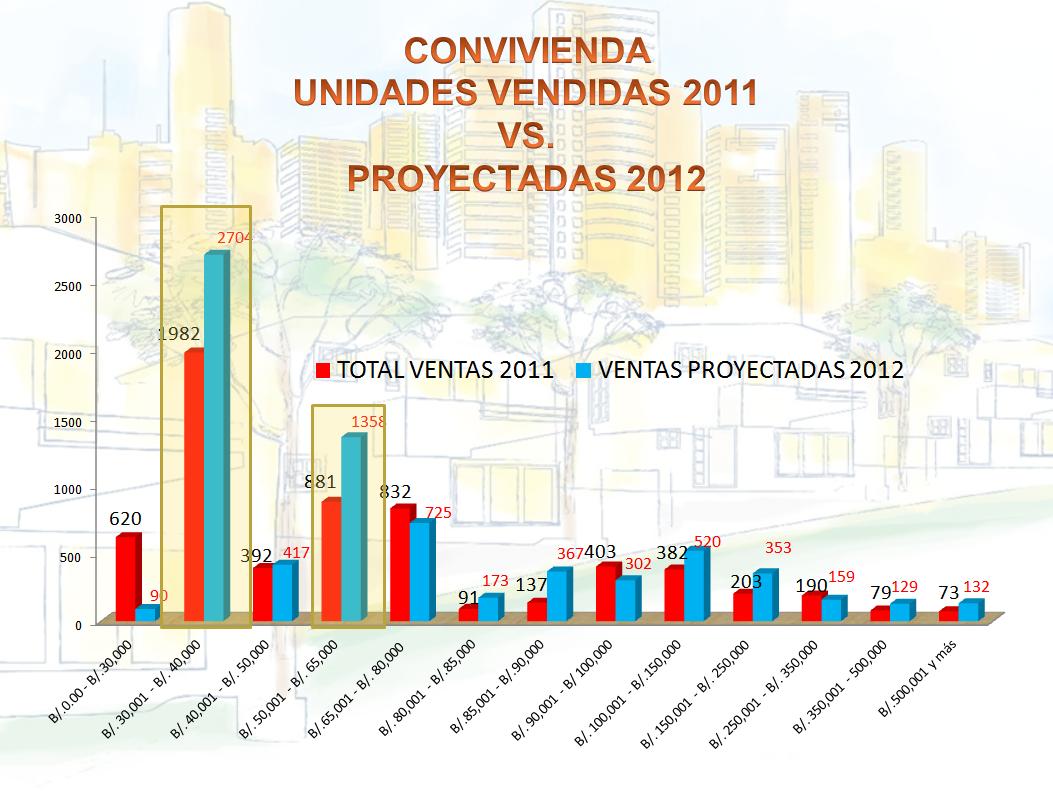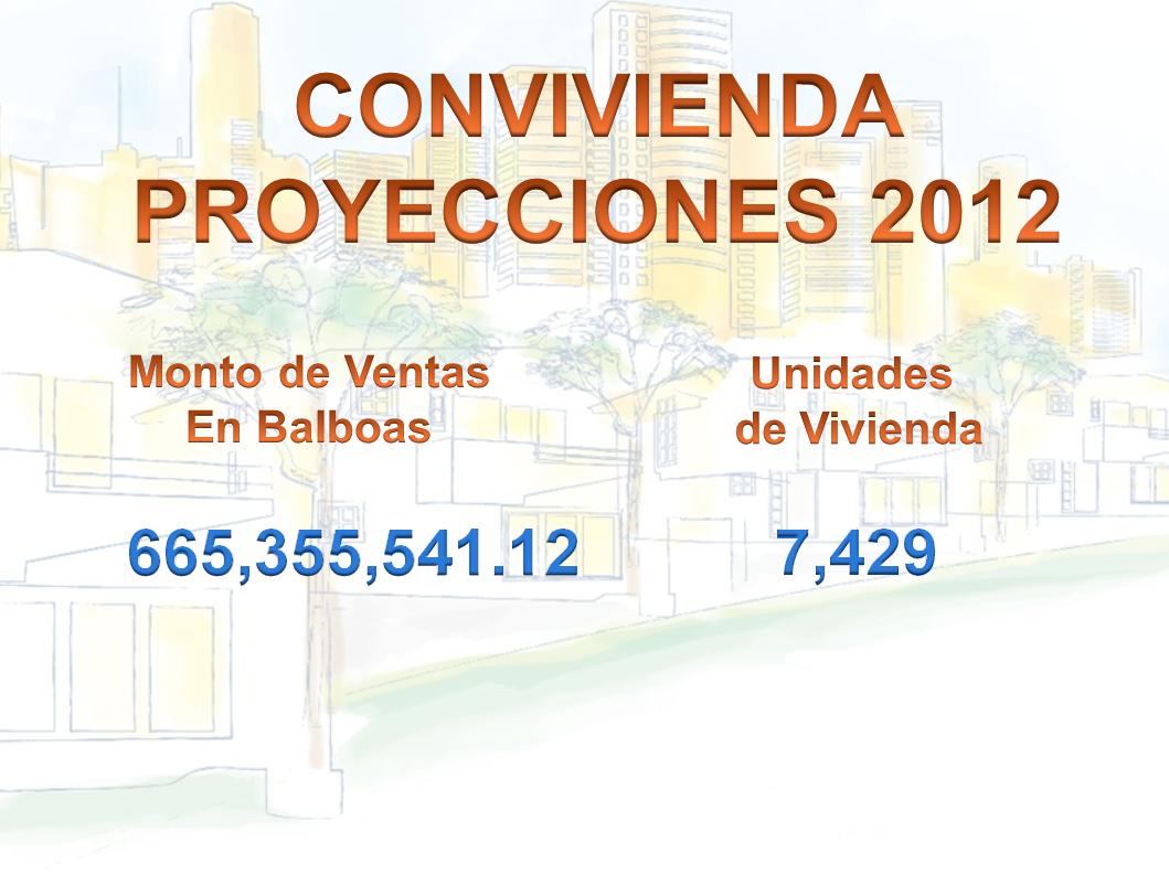 En cuanto a las proyecciones que tienen nuestros agremiados en el 2012, podemos señalar que con la misma confianza que siempre han demostrado en el crecimiento de Panamá, se esperan ventas por más de 665 millones de Balboas, con un total de 7,429 unidades de vivienda.