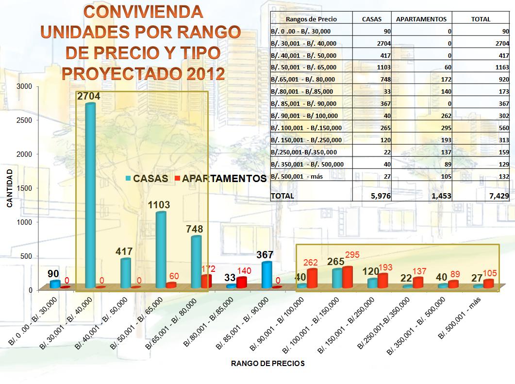Las proyecciones de Convivienda por Rango de Precio y Tipo para el 2012 nos muestran lo siguiente: